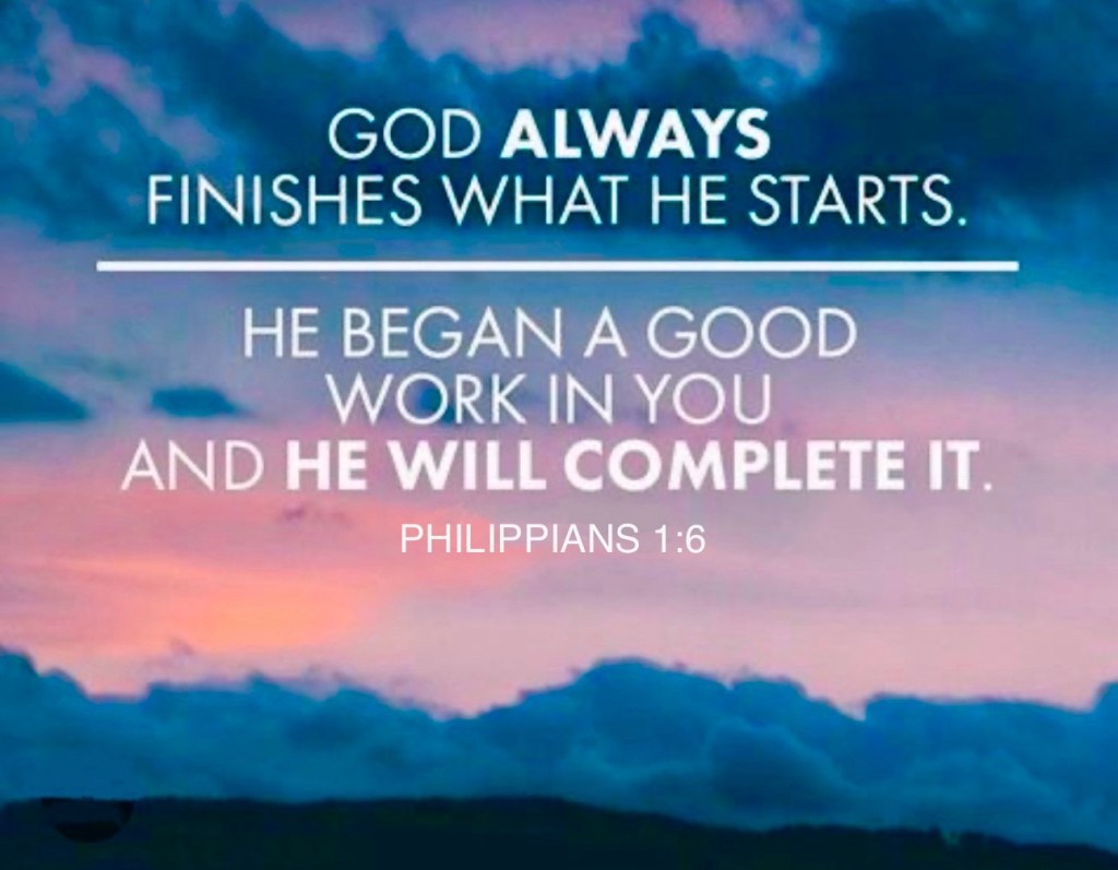 “He who began a good work in you will carry it on to completion until the day of Christ Jesus” ~~ Philippians 1:6.
